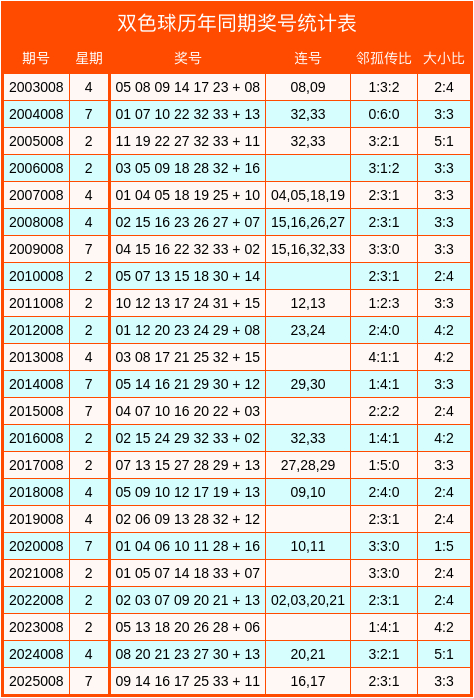 双色球积年同时数据统计表